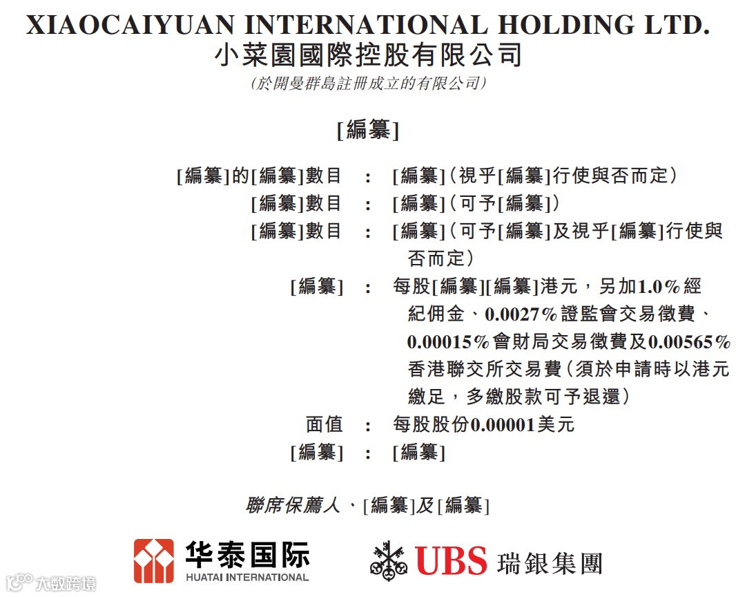港交所7月16日披露,小菜园国际控股有限公司递表港交所主板申请上市,华泰国际、瑞银集团担任联席保荐人。