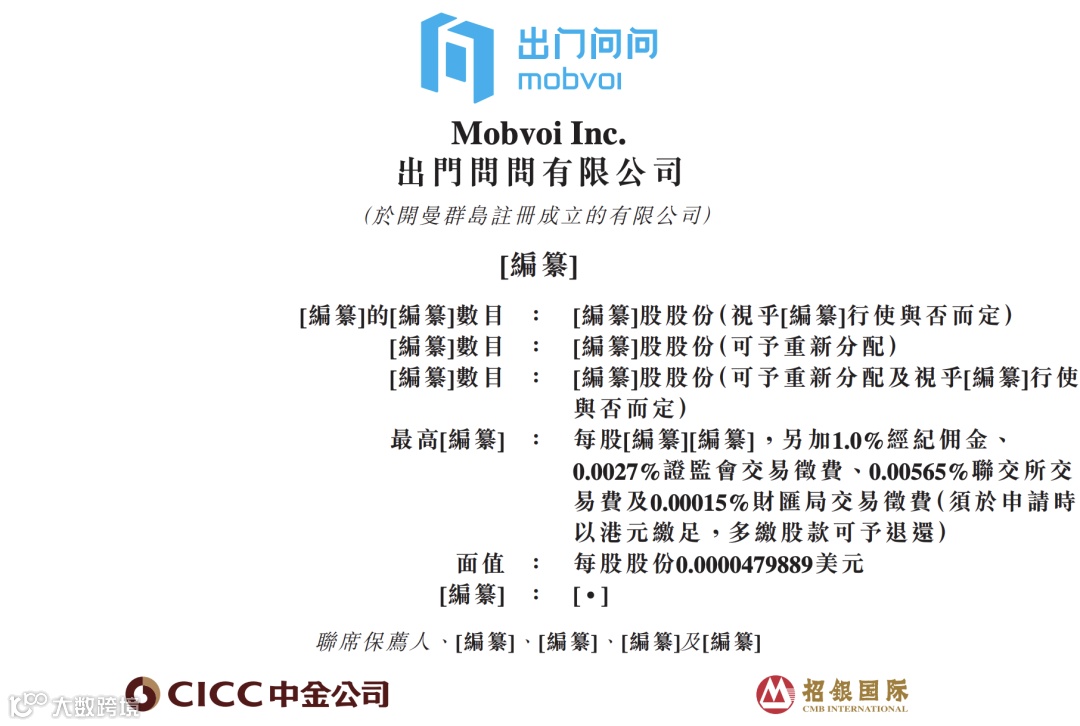 据港交所12月2日披露,中国人工智能公司出门问问(Mobvoi Inc.)递表港交所主板,中金公司与招银国际为其联席保荐人。