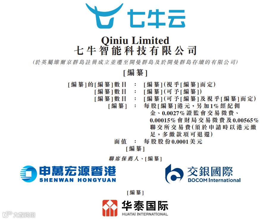 据港交所3月18日披露,七牛智能科技有限公司(七牛云)更新港交所招股书,申万宏源香港、交银国际、华泰国际为其联席保荐人。