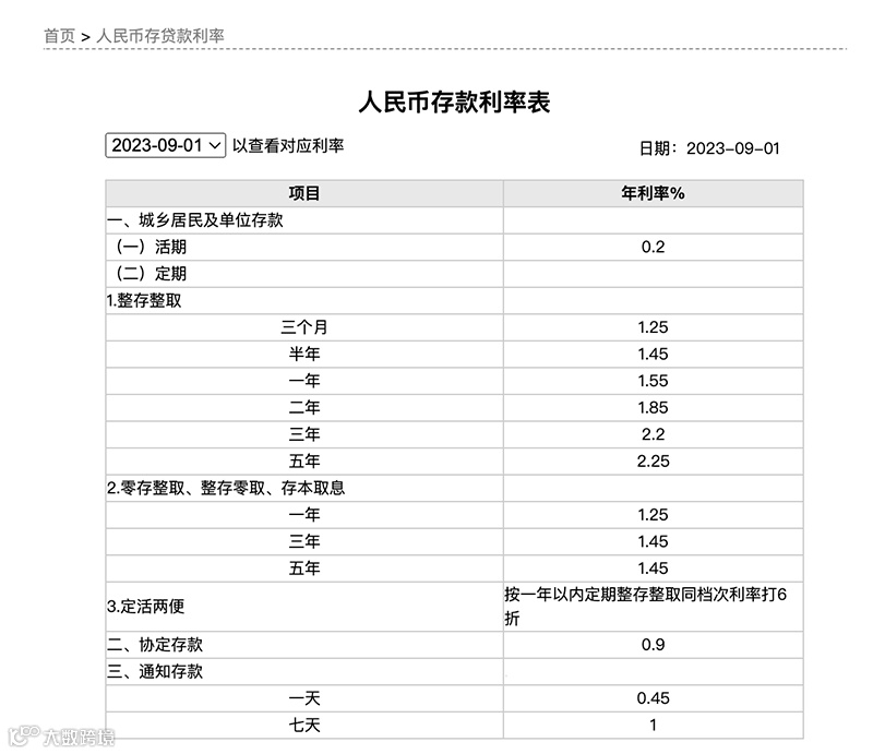 具体看,整存整取存款方面,三个月、六个月、一年期利率下调0.1个百分点,利率分别调为1.15%、1.35%、1.45%;两年期下调0.2个百分点至1.65%;三年期、五年期利率下调0.25个百分点,利率分别调为1.95%、2.00%。