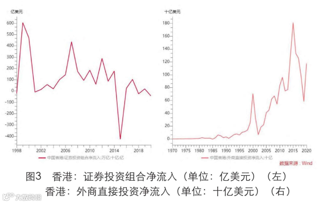 现如今,香港以国际金融中心著称,投资市场较之以往有了更大发展。银行业方面,截至2020年5月底,香港已有163间持牌银行、17间有限制牌照银行和13间接受存款公司;外汇市场方面,根据国际结算银行在2019年进行的每三年一度的全球调查,香港外汇市场以成交额计算居全球第四。香港自2009年起七度成为全球首次公开招股集资额最高的地方。本地股票市场上有多元化的投资产品,包括普通股份、期权、交易所买卖基金、房地产投资信托资金等。香港也是全球最开放的保险业中心之一。截至2020年5月底,香港共有165家授权的保险公司。同时,香港既是亚洲区内最大的资产管理中心之一,也是投资组合管理活动的区域中心。在强大的金融体系支撑下,香港投资市场得以长足发展。根据权威统计数据,在近20年里,香港证券投资组合净流入和外商直接投资净流入基本保持正流入的水平,其中外商直接投资净流入大致保持增长态势。根据香港特区政府政府统计处发布的《2009年至2018年香港的证券投资流量》,尽管在负债方面净流入,但资产方面净流出相较而言更大,证券投资基本上保持净流出。由此可见香港在近十多年来,卖出资产、买入负债意愿明显,证券投资卖方更强势。