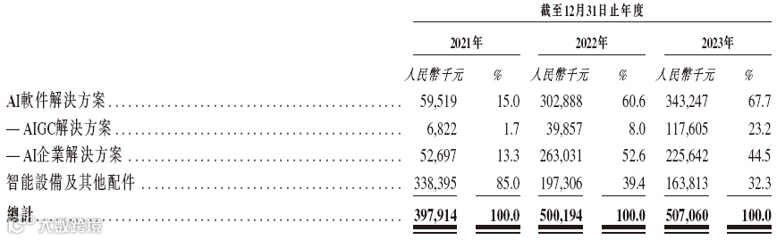 出门问问的收入主要由AI软件(包括AIGC解决方案和AI企业解决方案)与AIoT硬件构成,近三年收入实现了稳定增长。