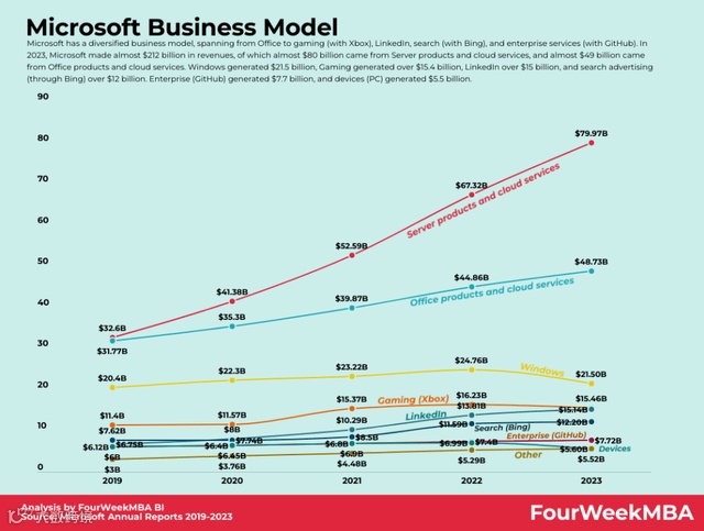 在上次财报电话会议上,微软表示该公司拥有53,000名Azure AI客户,其中超过三分之一是在过去12个月内使用Azure的。这有助于推动智能云领域的收入增长20%,达到259亿美元。