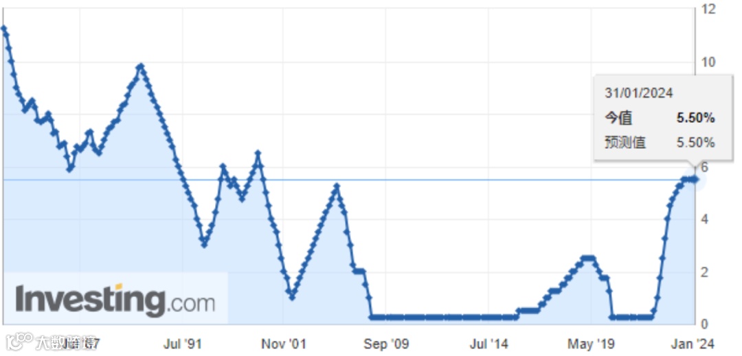 北京时间2月1日凌晨3点,美联储联邦公开市场委员会(FOMC)公布2024年1月利率决议,宣布将联邦基金利率目标区间维持在5.25%至5.50%之间不变。
