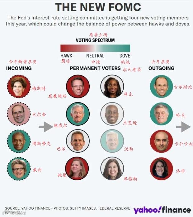 与此同时,美银在最新报告中指出,克利夫兰主席梅斯特(鹰派)、里士满联储主席巴尔金(偏鹰派)、亚特兰大联储主席博斯蒂克(偏鹰派)和旧金山联储主席戴利(中性)成为新票委。