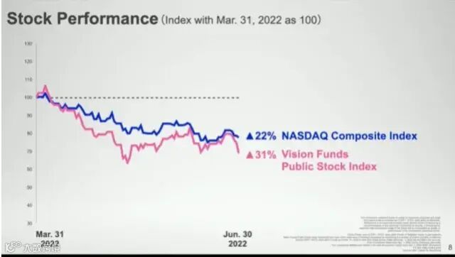 发布会上,孙正义表示,投资亏损主要源于全球股市的动荡和日元的快速贬值,并坦言愿景基金投资公司在二级市场的表现比纳斯达克综合指数更糟糕。
