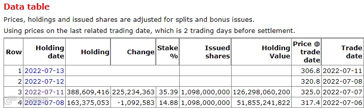 港交所CCASS数据显示,7月11日,比亚迪H股22523.44万股被转让给花旗银行,花旗银行席位的比亚迪H股数量增加2.25亿股至3.886亿股,占比35.39%。由于巴菲特恰好持有2.25亿股比亚迪H股,市场便猜测这些股份或来自巴菲特旗下的伯克希尔-哈撒韦公司(下称“伯克希尔”)。