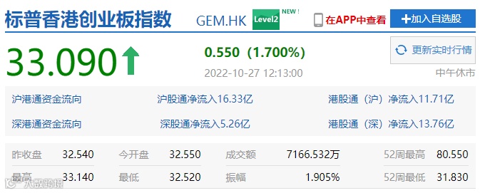 港交所,于1999年推出创业板(GEM),已23年。截至10月26日,目前共有342家上市公司,总市值779亿港元。截至午间,创业板指数跌到33.09点。