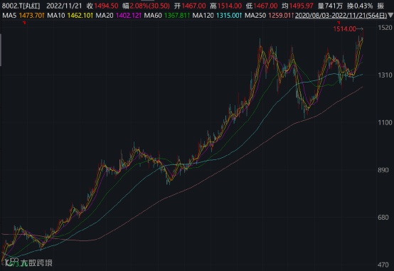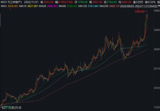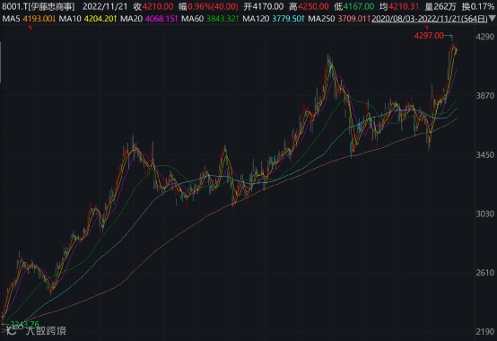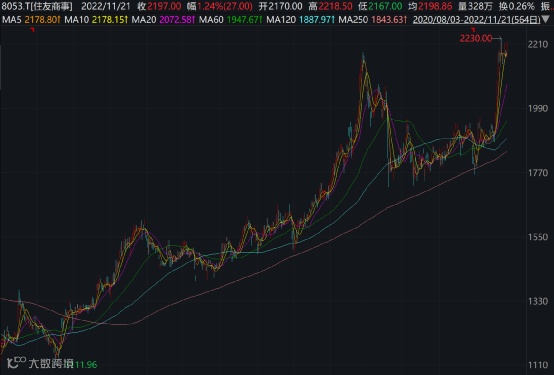 今年由于供应紧张、地缘政治冲突和需求反弹等因素,能源和大宗商品价格上涨,这几家日本贸易公司赚了个盆满钵满,也助推其股价的上涨。另外,日元大幅贬值也提振了他们的收益,上月日元兑美元汇率跌至了32年低点。
