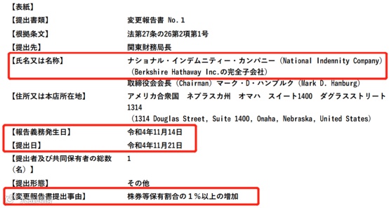 伯克希尔哈撒韦旗下的子公司持有丸红11604.56万股,持股比例从5.06%增加到6.75%。如果按照丸红最新的股价1494.50日元/股算,其最新的持股市值为1734.30亿日元。
