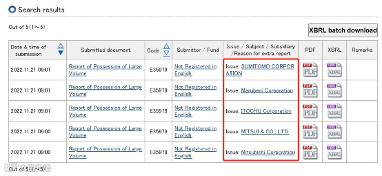 最新数据显示,11月下旬,伯克希尔哈撒韦旗下的全资子公司增持了日本市场的几只股票,包括伊藤忠商事、丸红、三菱商事、三井物产和住友商事,增持比例都超过了1%。