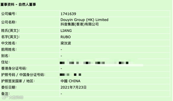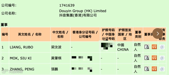 香港抖音集团三位董事公布:梁汝波领衔