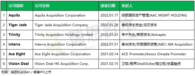 2022年以来,已有6家SPAC(特殊目的收购公司)在港交所递交上市申请: