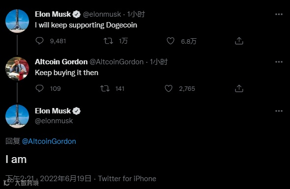 当地时间周日(6月18日),埃隆·马斯克在推特发文称,他将继续支持狗狗币。