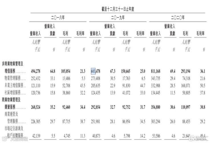 业务构成方面,越秀服务收入主要来自于两大方向:非商业物业管理及增值服务、商业物业管理及运营服务。其中,非商业物业管理及增值服务收入占比较大。2018-2020年,越秀服务的该项收入分别为4.94亿元、6.03亿元、8.11亿元,占同期营收总额的64.8%、67.3%及69.4%。