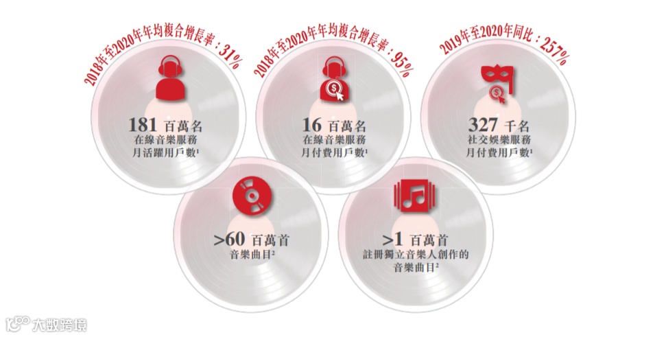 招股书透露,于往绩记录期间,以用户群和内容储备计,该公司经历快速增长:在线音乐服务月活跃用户数为1.81亿名,2018年至2020年年均复合增长率为31%;在线音乐服务月付费用户数为1600万名,2018年至2020年年均复合增长率为95%;社交娱乐服务月付费用户数为32.7万名,2019年至2020年同比增长257%;音乐曲目超6000万首;注册独立音乐人创作的音乐曲目超100万首。