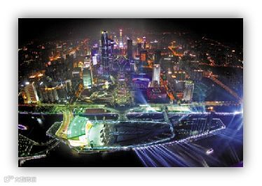 开始珠江巡游,江面投影循环播放赛事宣传视频。途经星海音乐厅、广州塔、花城广场、亚运公园、广州大剧院、省博物馆、猎德大桥等广州市地标性建筑。