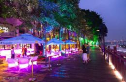 多艘游艇,白天停靠在琶洲会展码头助威。晚上8:30