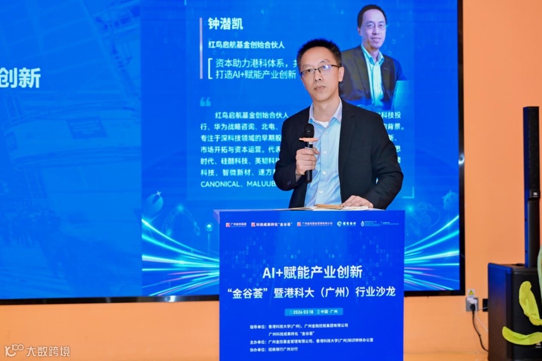 钟潜凯围绕《资本助力港科大(广州),共同打造AI+赋能产业创新》主题发表主旨演讲。他介绍了红鸟启航基金的设立背景与投资进展,并从技术层、平台层、应用层与治理层四个维度,系统阐述AI+对产业价值链的赋能与重构路径和范式;同时详细分享了基金助力港科大(广州)推进AI+赋能创新的具体举措,通过源头孵化嵌入科创培育体系、技术协同共建联合实验室、产业落地与招商链接大湾区场景,为高校科技成果转化与产业创新发展提供坚实的资本、科创产业协同及联合孵化保障。