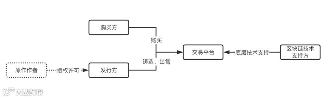 交易平台属于提供网络服务的第三方平台,发行方、购买方分别与交易平台之间构成网络服务合同关系。另外,上述交易的进行,发行方事实上还会许可交易平台对NFT藏品进行存储、复制、展览、翻译、分发等。