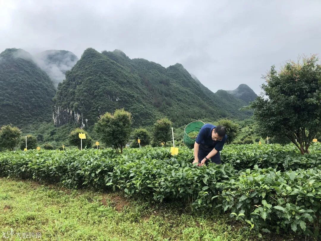 折回途中,我们惊喜地走进了一片英红九号茶叶的生产基地。方圆几里地都是绿油油的一片,茶园中间排列有序地树立着一片片黄色的纸板,一开始不知道是啥,走进才发现上面立粘着好多蚊虫。看来茶园主人为了保护茶叶也是用尽才智。远处还有几位茶农,正冒雨背着茶篓采茶。路边,每隔几条茶林,就有一只装满了刚摘下来的茶叶的茶篓,茶篓上方还有一只雨伞虔诚地为他们遮着风挡着雨。同行伙伴中终于有人按捺不住了,借用了一只满载茶农劳动成果的茶篓,像模像样的斜背在身上,走进了茶园,摆好了pose,然后呼唤身边的几位临时摄影师分别从多个角度进行抓拍。哈哈,好吧,去朋友圈当一名茶农的愿望终于实现了。顺着茶道,我们走出了茶园,一边问着偶尔运气爆棚时遇到的会讲普通话的村民,一边跟着感觉随时切换着徒步的线路。才走了两公里多,就有小伙伴们嚷嚷着饿了、累了。而恰到好处的是,在一片前不见村后不着店的山野脚下,出现了一座简朴的农庄。一对热情的夫妻农庄主接待了我们,给我们每人盛了一碗刚出的豆花,还给我们煎了本地的黄豆腐,就着他们秘制的辣椒酱,轻啖一口,哇,唇齿间的豆香,夹杂着辣椒的酱香与刺激,感觉人生达到了巅峰。而此刻,老板娘一壶英红九号冬茶的醇厚,更是安慰了我们欲求不满的味蕾。美食、好茶、透爽的笑声,再加上老板娘的一段催人泪下的艰苦奋斗史,丰满而又精彩的人生淋漓尽致。感慨江山如此多娇,生活如此美好!临行前,还有不满足的小伙伴们,拿了几只冰激凌,一边兴奋地大快朵颐,一边偷偷地防着同行的小朋友,生怕诱发一起小朋友叫唤冰激凌求而不得继而激化矛盾的可怕场景……