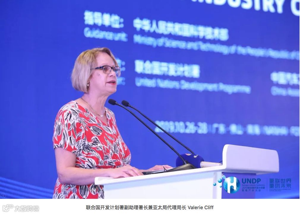 10月26日上午,在UNDP氢能产业大会开幕大会上,联合国开发计划署副助理署长兼亚太局代理局长Valerie Cliff致辞。她表示,十六年来,联合国开发计划署一直致力于在中国倡导低碳经济并探索以氢能为基础的清洁能源解决方案,通过开展氢能经济与燃料电池商业化示范,为国内氢能和燃料电池产业化发展搭建广阔的国际合作平台,促进中国绿色低碳经济的发展,助力实现联合国可持续发展目标。