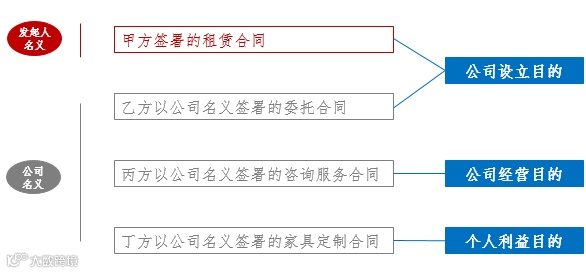 我们先对签订合同的情形进行分类。从签订合同主体名义来分类,可以分为以发起人名义签订的合同、以公司名义签订的合同。从签订的合同目的进行分类,可以分为以公司设立为目的签订的合同、以公司经营为目的签订的合同、以实现个人利益签订的合同。详见下图:
