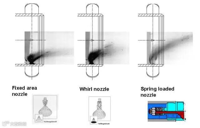 以下是三种喷嘴在相同条件下做的高速摄像: