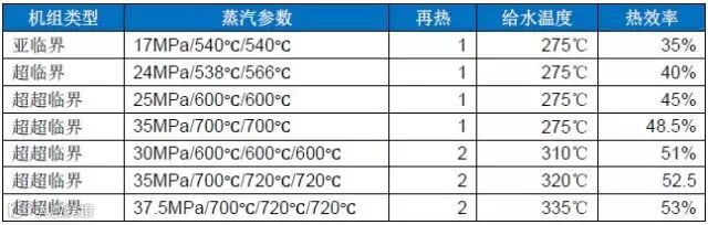 过去常见的亚临界燃煤发电机组,热效率为35%左右;而目前已经广泛应用的600℃超超临界燃煤技术,其热效率达到45%左右。
