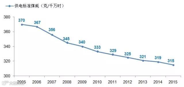 统计数据显示,2005年至2015年十年间,供电标准煤耗(火力发电厂每向外提供1千瓦时电能平均耗用的标准煤量)降低了15%。