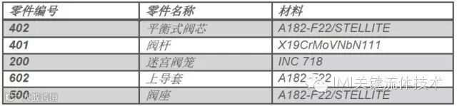 从现场用户更换下来的迷宫阀笼和阀芯上的损坏情况来看,与以前解体检修时发现的大量粉末状Fe3O4有必然的联系,而高旁阀内件的材料如下表,在2011年4月首次拆检时阀芯表面基本没有损伤,而阀内明显存在大量Fe3O4的粉末,这些粉末肯定不是阀内件的材料表面氧化和最后吹损所产生;弄清楚这些Fe3O4的粉末产生的原因,才能真正分析阀内件损坏的根本原因。