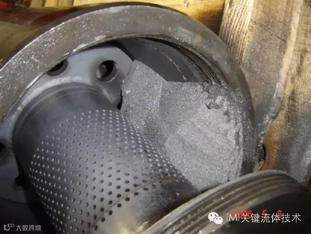 下图中显示的是10英寸的阀门,在改造前用户反映每6-9月总要出现阀芯与的笼罩黏结导致阀门卡涩和阀内件损伤问题。目前该阀的阀芯加装了过滤器,已连续运行了三年,送回IMI CCI维修中心进行例行拆检、清洗和维护,在阀芯内部的过滤装置中有大量堆积下来的氧化物粉末;在连续运行的三年中,用户也不再反映因磁性物质堆积造成阀芯与的笼罩黏结卡涩问题。