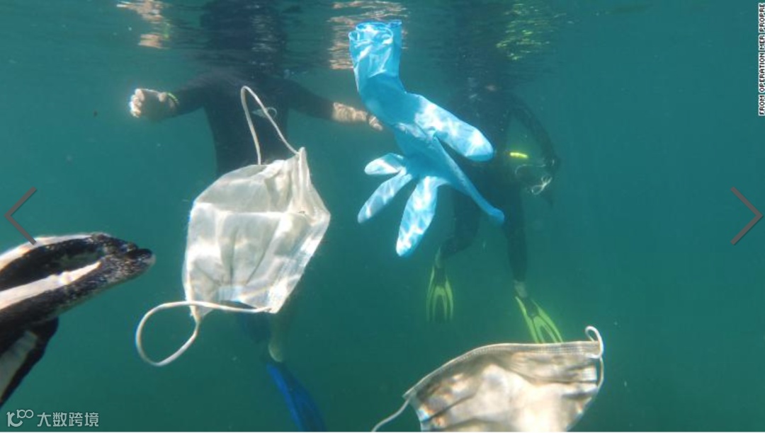 被口罩缠绕着脖子的乌龟们,被口罩束缚着双脚的海鸟们,被包裹在口罩中的鱼类。。。。。。一部挣扎的残忍的海洋逃难大片正在上演!