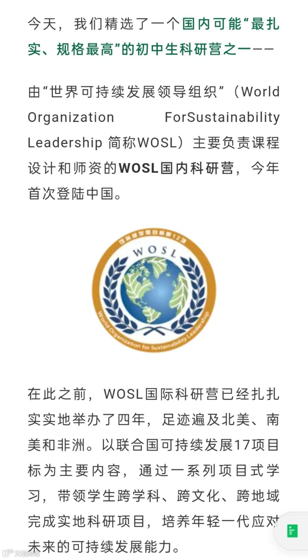 如此备受瞩目和期待,主要还是因为,这个由“世界可持续发展领导组织”(World Organization For Sustainability Leadership 简称WOSL)主要负责课程设计和师资的WOSL国内科研营,扎实程度在国内实属稀缺,今年首次登陆中国。