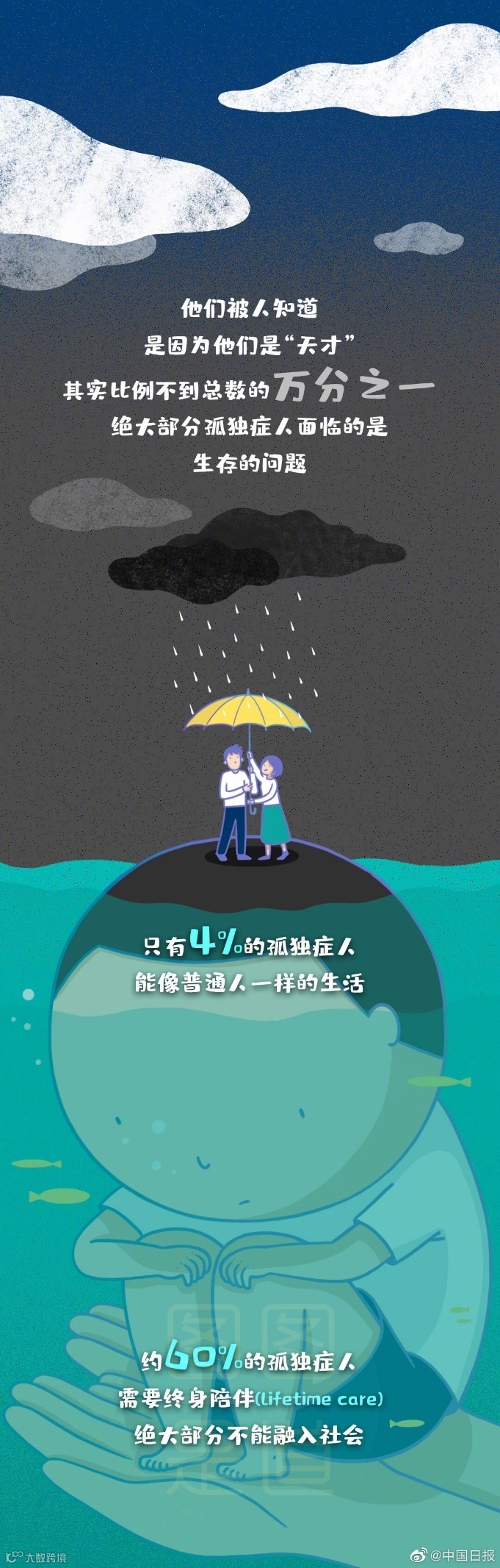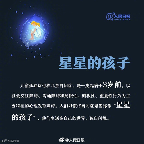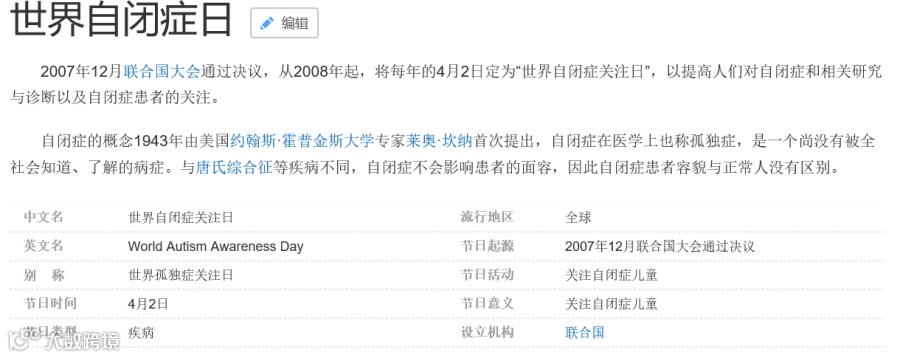2007年12月联合国大会通过决议,每年的4月2日是“世界自闭症关注日”,自2008年开始,今年是第13个星星的孩子们的节日。