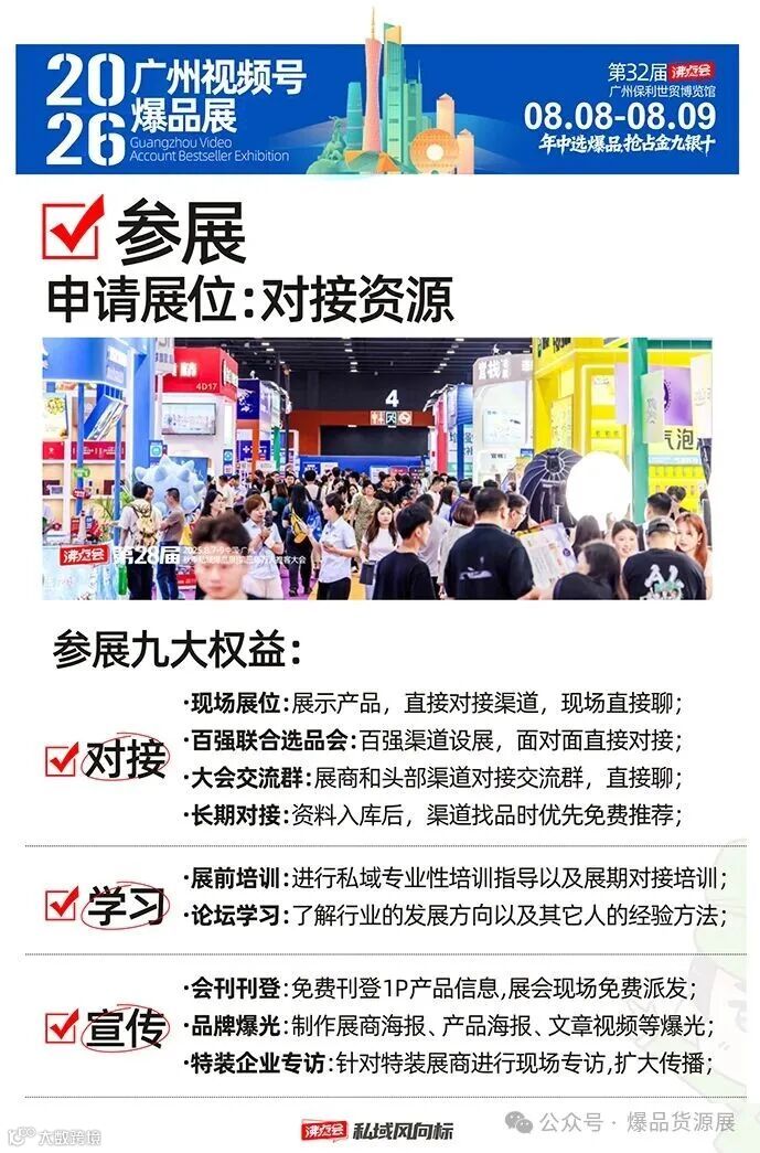 8月8日,广州保利世贸博览馆将变身私域选品的“爆品工厂”。2026广州视频号爆品展共启用5个展馆,按品类分区,精准对接,效率翻倍。