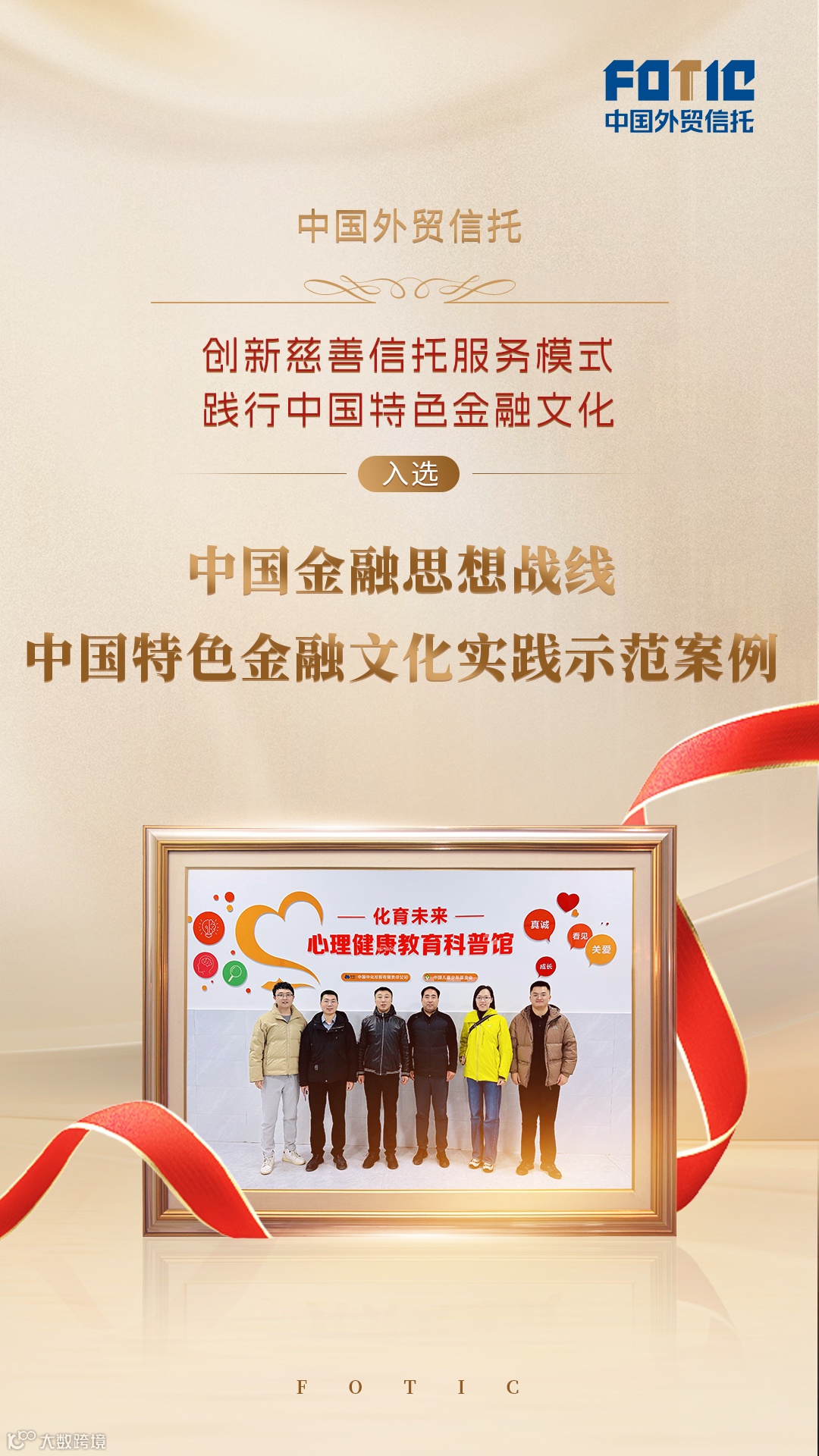 近日,中国金融思想政治工作研究会正式公布全国首批中国特色金融文化实践示范案例名单,中国外贸信托以“中国中化乡村振兴慈善信托”为项目主体报送的《创新慈善信托服务模式 践行中国特色金融文化》案例成功入选,成为信托行业以金融文化引领业务实践、服务国家战略的示范标杆。