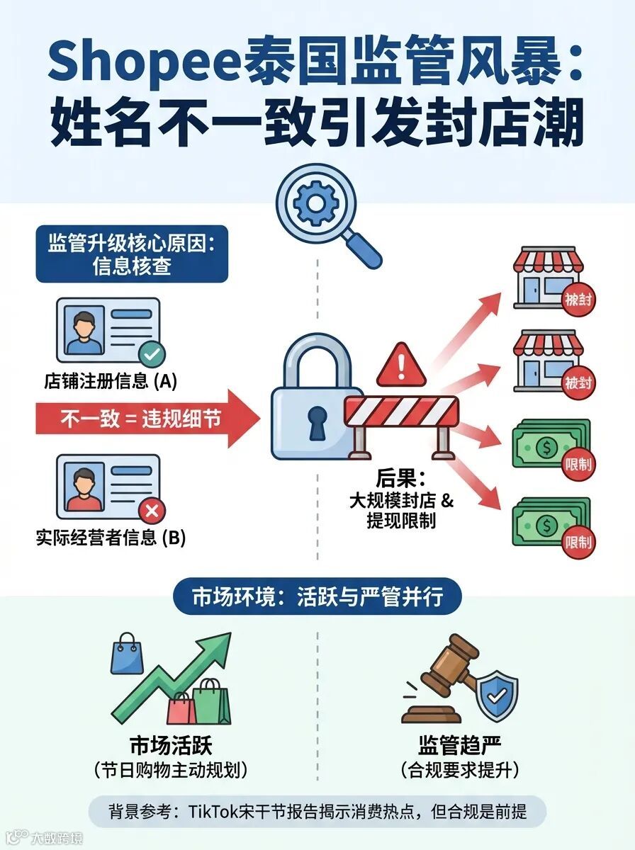 🔍 Shopee泰国监管升级,大批店铺因“姓名不一致”被封
