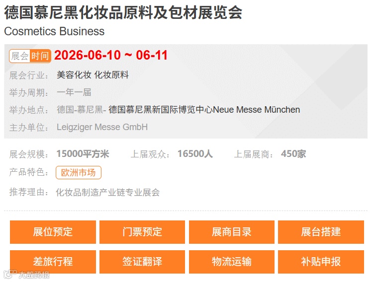 观众来源国: 主要来自德国 (74%)、奥地利、瑞士、意大利、捷克 展会官方统计 聚焦德语区及中欧市场,区域辐射能力强