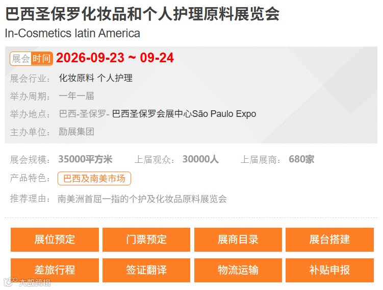 巴西圣保罗化妆品和个人护理原料展览会