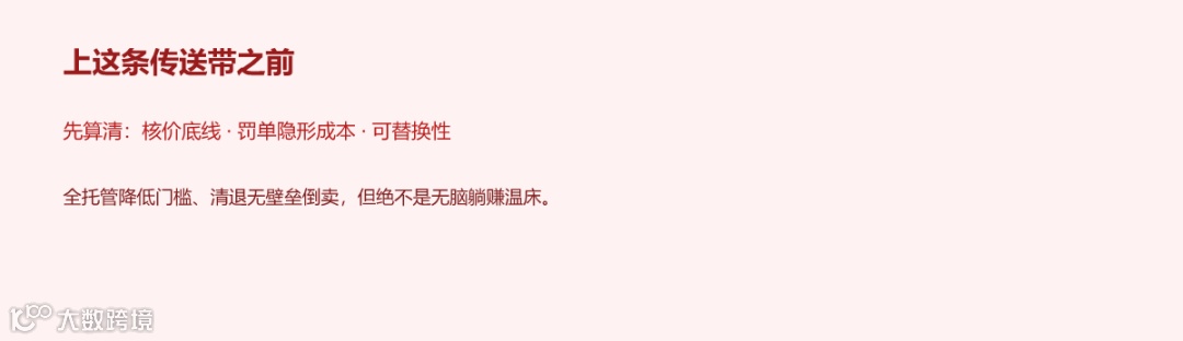 全托管当然有它存在的价值,它确实降低了出海的门槛,清理了没有壁垒的倒卖型卖家。但也请务必清醒:它绝不是什么无脑躺赚的温床。认清自己的供应链底线,算明白每一张罚单背后的隐形成本,再决定要不要把身家性命押上这条传送带。