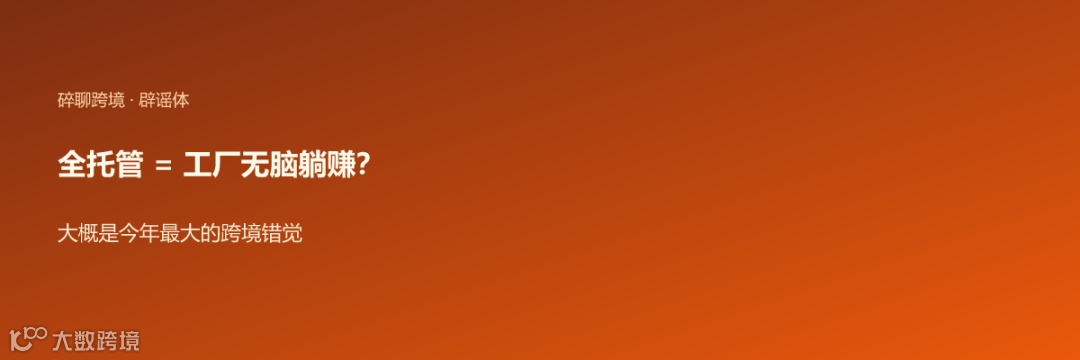 自从几大跨境平台相继祭出“全托管”之后,行业里就不绝于耳地流传着一种极其振奋的说法:“中间商被消灭了,源头工厂的春天到了。工厂什么都不用管,只要把货交到国内仓,老老实实当大爷躺赚就行。”