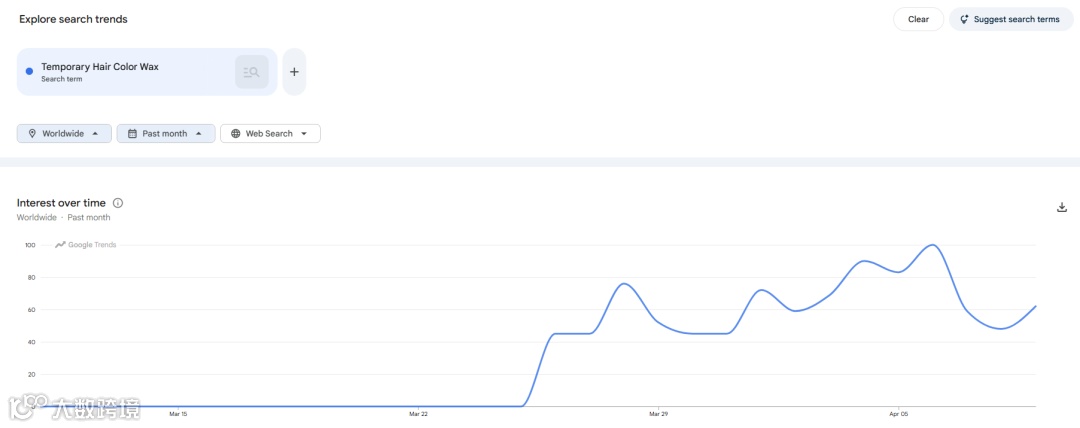 打开 Google Trends 搜索 “Temporary Hair Color Wax” ,你会发现一条极其性感的周期性爆发曲线。它不仅在每年的万圣节(Halloween)、跨年夜迎来极其恐怖的垂直拉升,更在每年 4 月开始的欧美音乐节狂欢季保持长达数月的高位震荡。它完全不受经济周期的影响,只要年轻人的派对文化不死,这个品类的搜索和购买需求就永远处于井喷状态。