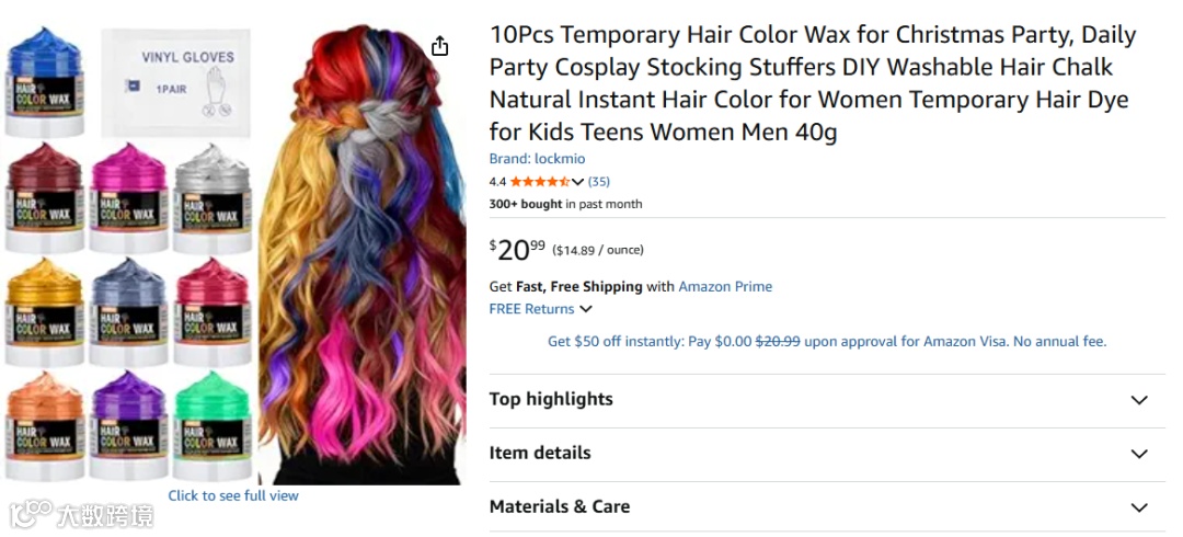 千万不要把所有预算都砸在社媒上,亚马逊才是承接“最后一分钟焦虑”的终极印钞机。很多老外周五晚上要开派对,周三才想起来搞头发,这时候他们会直奔亚马逊搜索 “Temporary Hair Color for Kids” 或 “Washable Hair Wax” 。你的 Listing 只要死死卡住这些精准词,配合 FBA 的次日达(Prime)极速物流,就能极其滋润地截流这波急切的变美刚需,转化率轻轻松松拉爆同行。