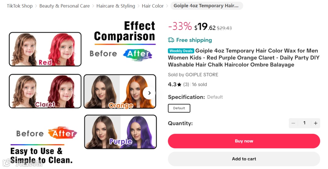 这里是走量的绝对主战场。把“徒手变色”的视频疯狂起量,小黄车直接挂载。千万不要单卖一罐!直接以“派对狂欢三色装”或“周末百变五色盲盒”的形式售卖。标价 $14-$19 美金。在强烈的视觉刺激下,这种白菜价的变美成本根本不需要思考,直接实现爆单式转化。