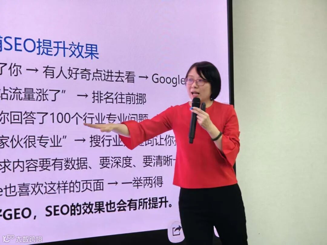 本次沙龙特邀谷歌官方认证黑带讲师李姿授课。李老师拥有22年跨境电商行业经验,她围绕AI时代外贸流量逻辑的底层变革、独立站打造、GEO营销、社媒联动四大核心主题,结合实战案例拆解AI营销全链路方法论,为参会企业提供可落地的实操方案。活动现场设置互动答疑、经验交流环节,企业代表围绕自身运营难点与讲师、同行深入探讨,形成“理论+实操+答疑”的沉浸式学习体验。参会企业普遍表示,通过本次培训精准把握了AI营销趋势,掌握了GEO优化核心技巧,有效解决了独立站运营、社媒引流等实际问题,为企业海外市场拓展注入了新动能。