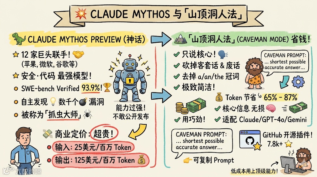 Claude Mythos的发布凸显AI能力分化趋势:顶尖模型趋向"核武器"级能力,而通过优化技巧,普通开发者仍可经济高效地应用下一代AI技术。