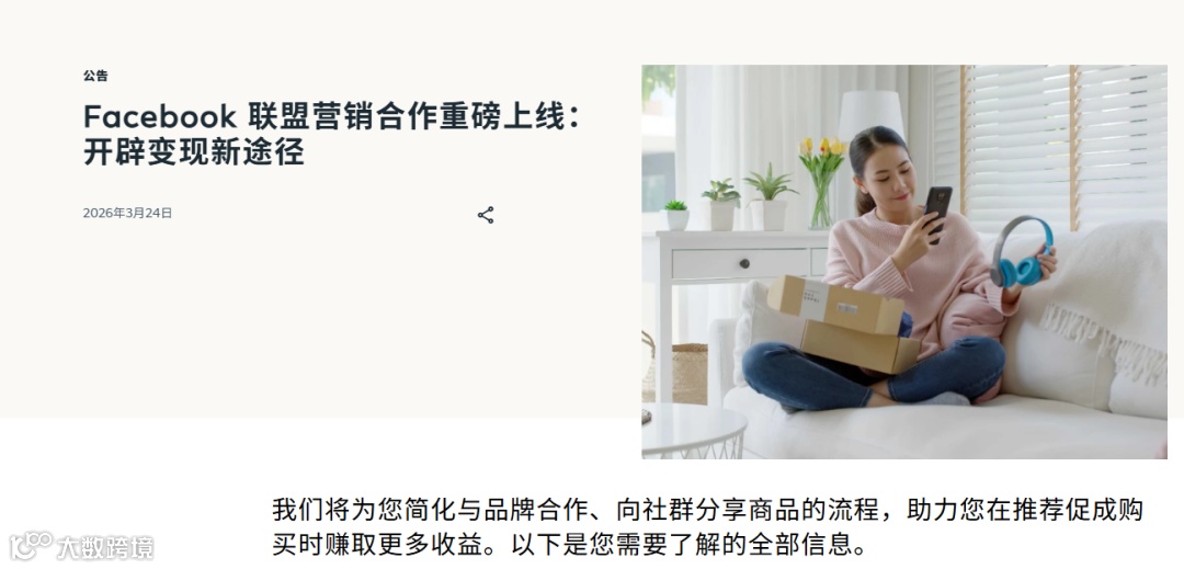 Facebook此举实质是构建创作者原生带货基础设施:对联盟客是新兴流量入口,对卖家是整合“达人分销+广告转化”的必争渠道。短期应聚焦内容与选品测试,中期将跑通的素材转化为规模化投放资产。