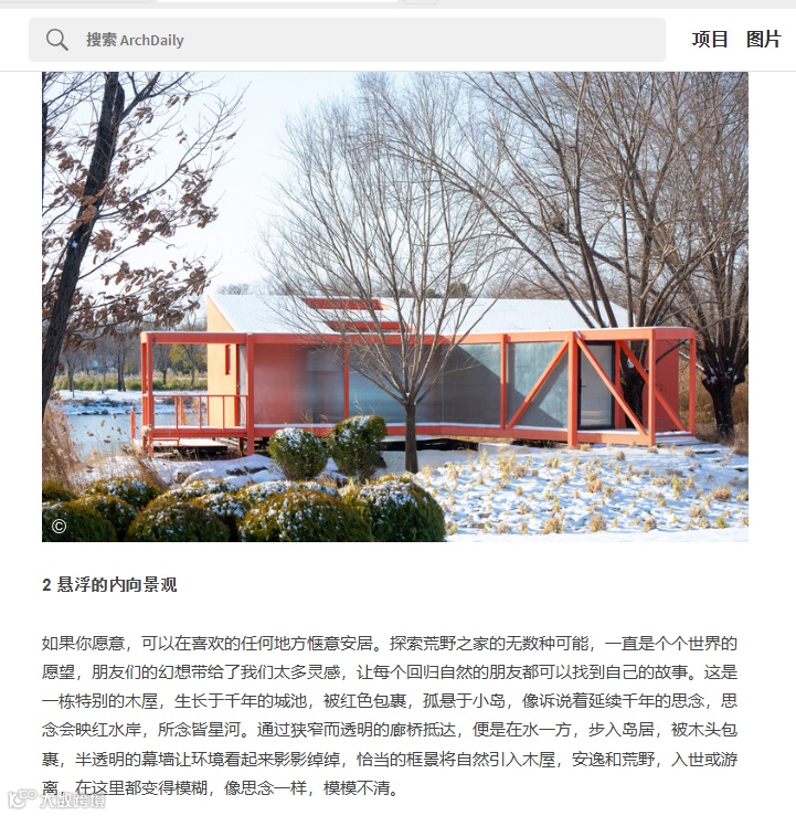 全球访问量最高的建筑平台ArchDaily国际主站在核心版面将其定义为“可持续设计与在地文脉、生态智慧融合的典范”。项目通过全装配式胶合木结构与全架空无地基设计,实现对原生生态的零破坏,践行“建筑轻介入,自然深共生”理念。