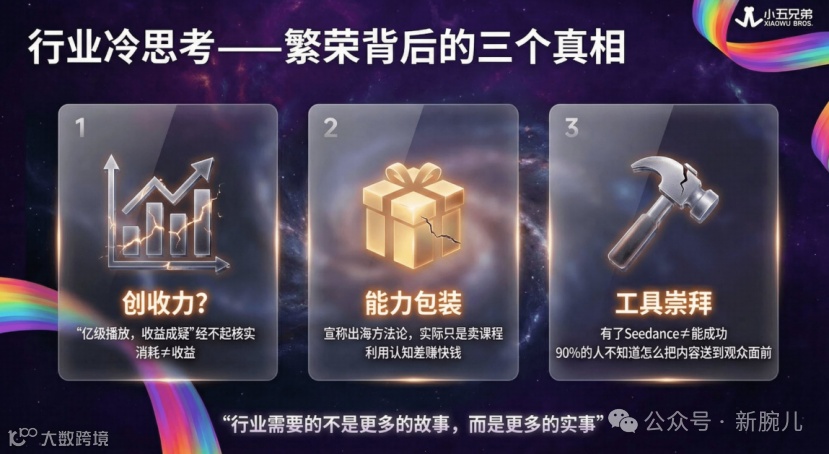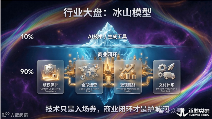 当前行业聚焦AI技术工具,却忽略内容出海变现的关键环节。技术仅是基础门槛,商业闭环才是核心竞争力,最终目标在于实现海外创收。